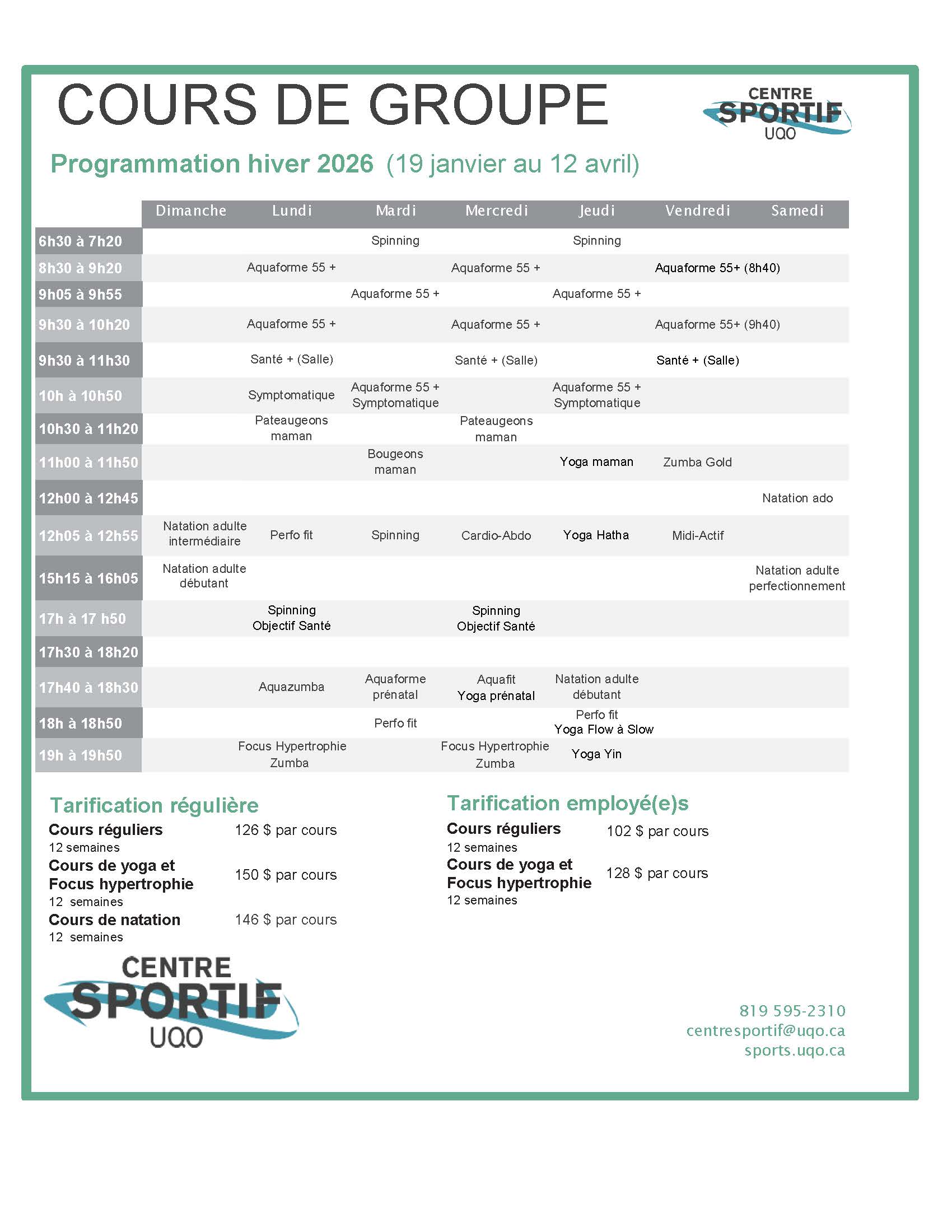 *INSCRIPTIONS AUX COURS DE GROUPES HIVER 2026, DÈS MAINTENANT*