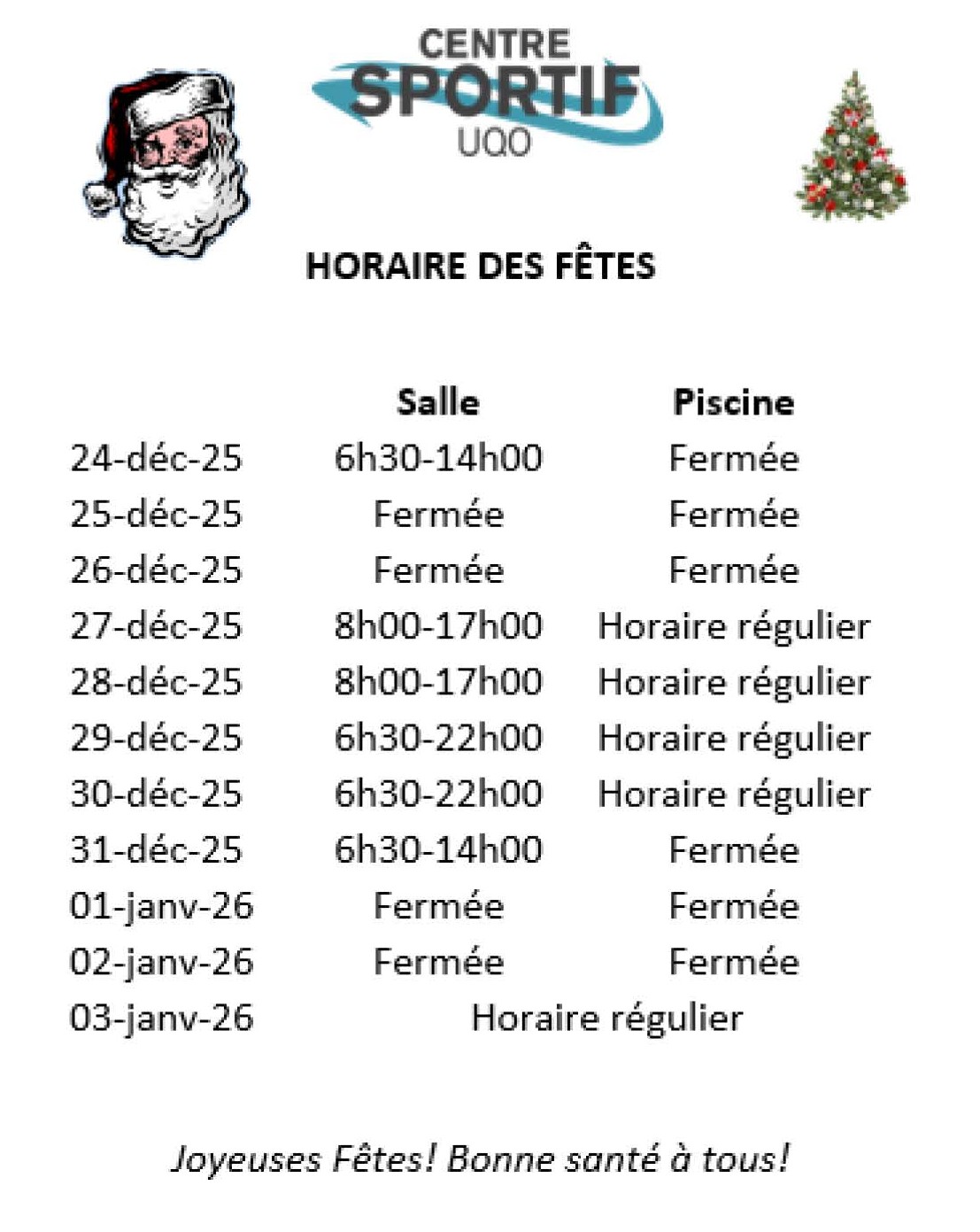 *HORAIRE DES FÊTES 2025*