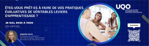 Vous enseignez à l'UQO et souhaitez vous préparer pour la session d'hiver ? Participez aux formations de présession le 18 décembre et le 8 janvier 2026. Consultez le programme et inscrivez-vous dès maintenant. Pour le moindre détail et pour tout autre besoin de formation ou de soutien pédagogique, écrivez à : pedagogie@uqo.ca.