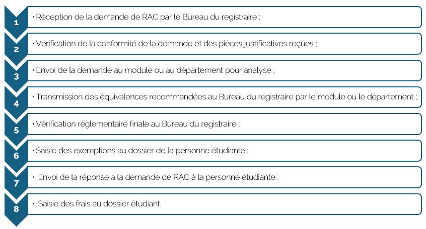 Pour soumettre votre demande de transfert de cours, veuillez contacter l’instance responsable de votre inscription.- Procédure pour soumettre une demande de RAC