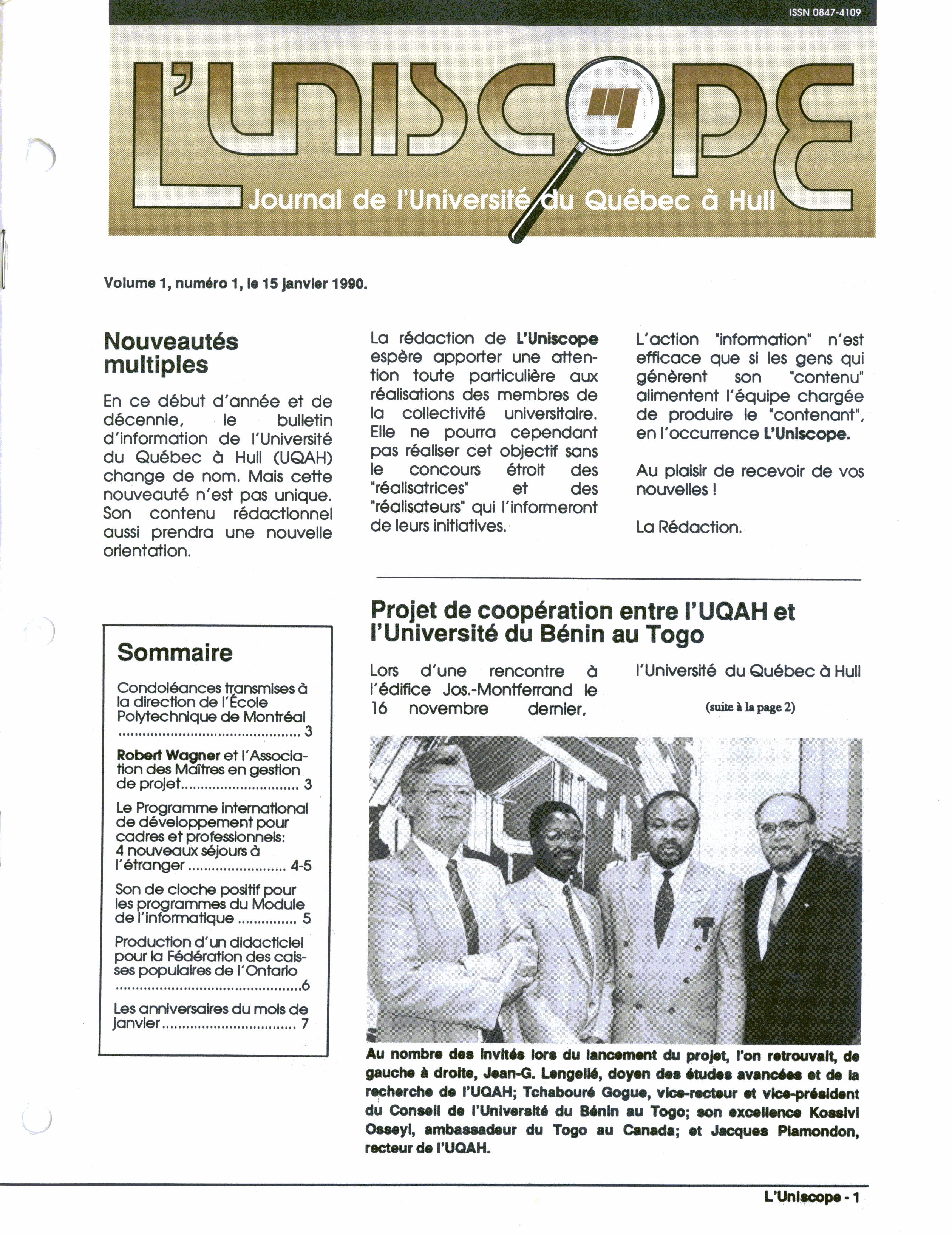 Université du Québec à Hull (UQAH)Efforts finaux décisifs vers le statut | Naissance de l'UQAHC'est finalement le 10 mars 1981 que le Conseil des ministres de l'Assemblée nationale crée enfin l'UQAH, l'Université du Québec à Hull. Que de chemins parcourus depuis les SUO, jadis voués à disparaître après l’octroi des diplômes aux derniers étudiants de l’École normale! L’autonomisation de l’UQAH pousse l’UQAT à voler de ses propres ailesL’émission des lettres patentes de l'UQAH met ainsi un terme à l'union des deux régions et le nouveau Centre d’études universitaires en Abitibi-Témiscamingue (CEUAT) revendique à son tour l’autonomie. C’est le 19 octobre 1983 que le Conseil des ministres émet les lettres patentes tant attendues. Celles-ci font de l’Université du Québec en Abitibi-Témiscamingue, l’UQAT, la dernière née des constituantes du réseau de l’UQ. |