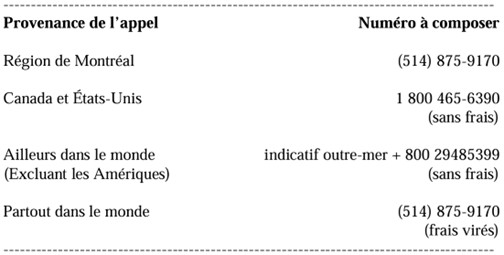 Région de Québec : (418) 838-7580 Autres régions (sans frais) : 1 866 838-7580