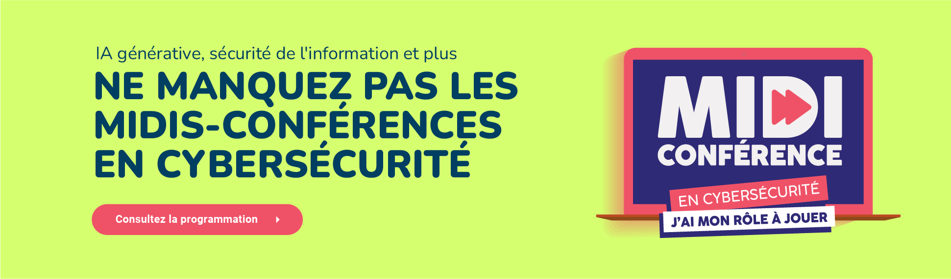 À l’occasion du Mois de la sensibilisation à la cybersécurité, le ministère de la Cybersécurité et du Numérique vous invite à participer à trois midis-conférences qui aborderont le thème de la cybersécurité sous différents angles.