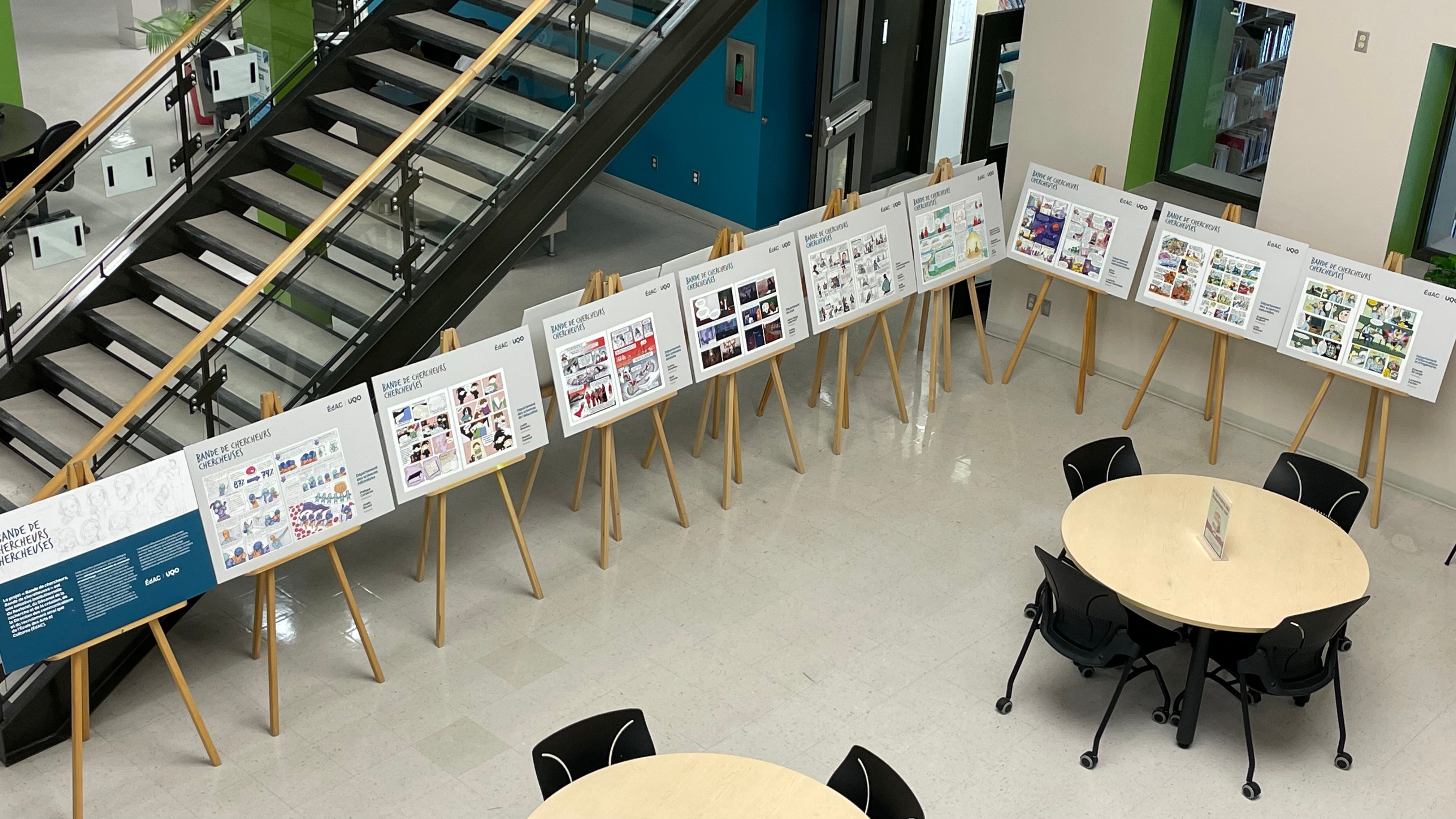 Inspirés par les expositions Les chercheuses en BD, présentées à la bibliothèque en 2023 et 2024, les étudiants et étudiantes du programme de bande dessinée de l'ÉDAC mettent en lumière les contributions des 13 départements et écoles de l’UQO à travers une série de planches originales.