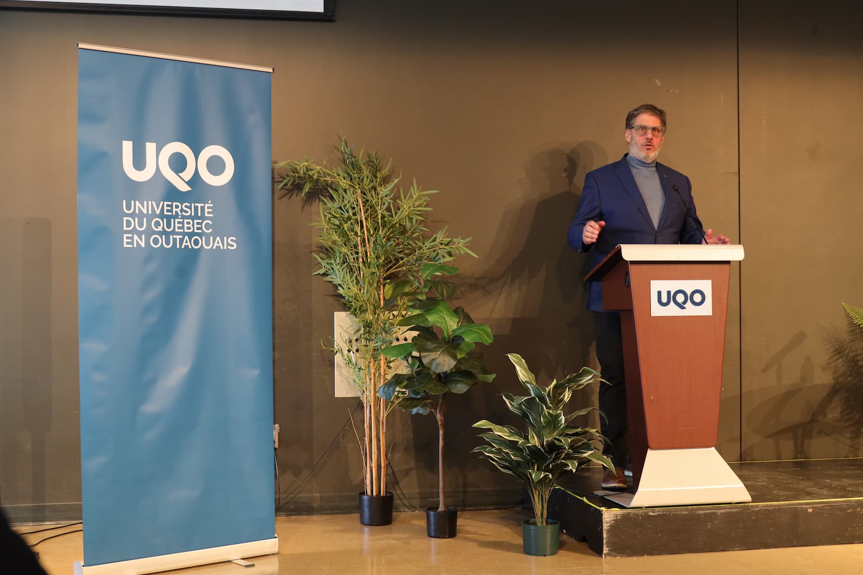 Le ministre de la Cybersécurité et du Numérique et député de Orford, Gilles Bélanger, était de passage à l’UQO, à Gatineau, le vendredi 13 février 2026, où il a tenu un point de presse en matinée pour une annonce majeure sur la souveraineté numérique.