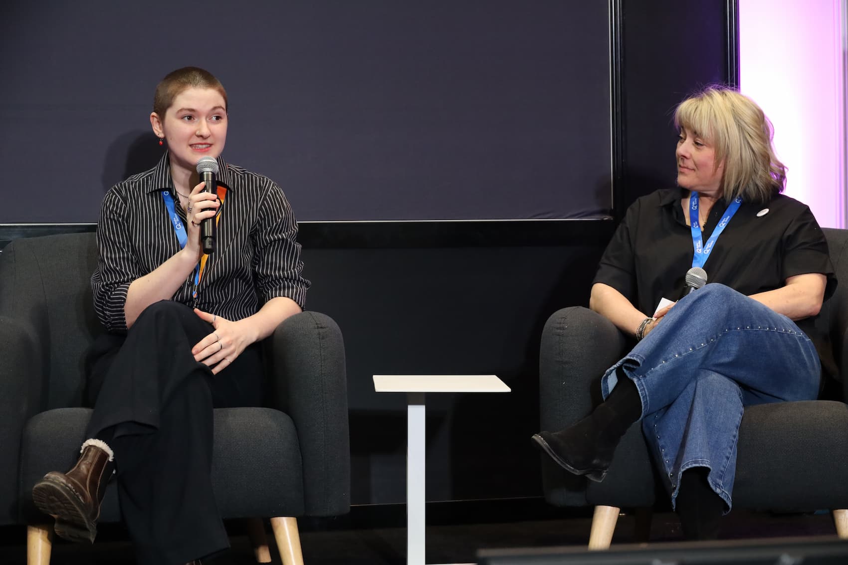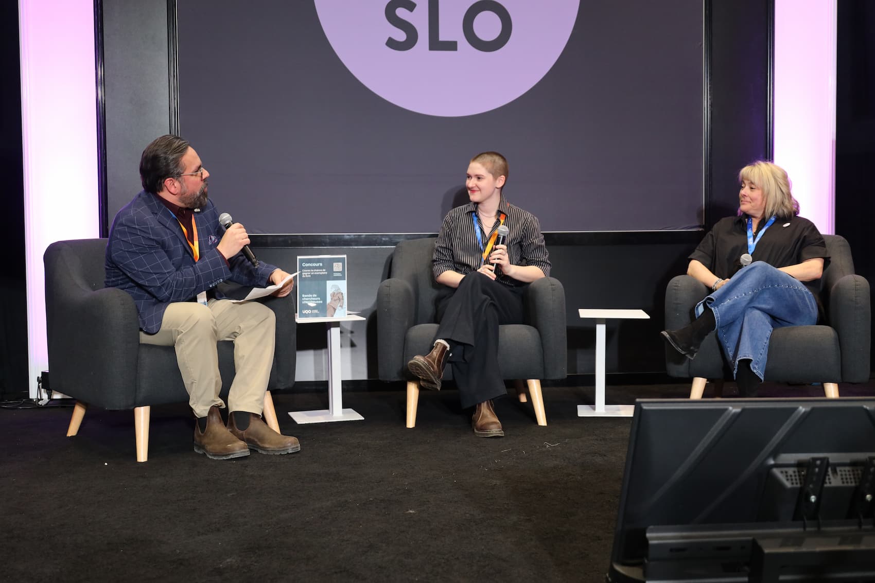 Monsieur Beaudry a animé un panel avec la professeure Nathalie St-Amour, du Département de travail social, à droite, et l'étudiante Laurence Girard, de l'ÉdAC, qui a réalisé la planche.