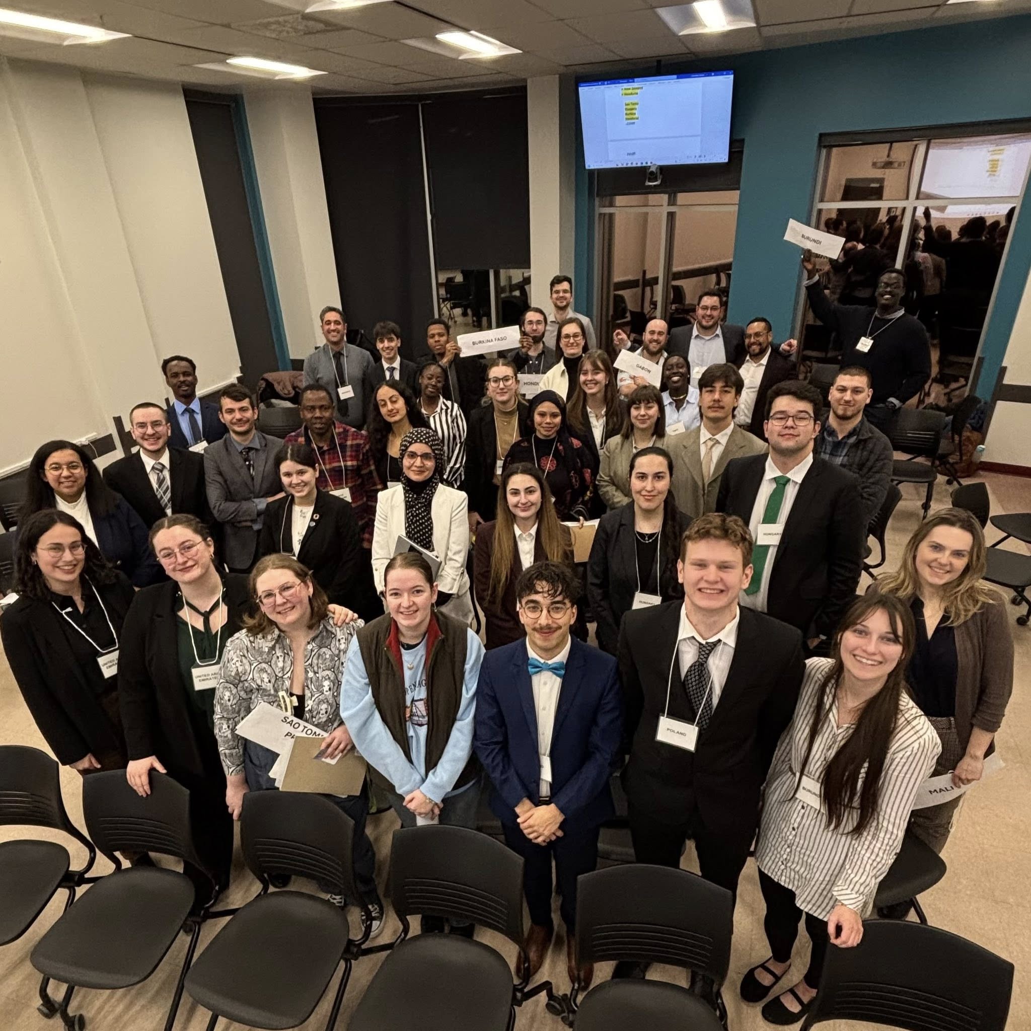 La délégation 2026 de l'UQO accompagnée d'une vingtaine d'ancien·nes délégué·es pour une pratique de simulation, UQO, 11 février 2026