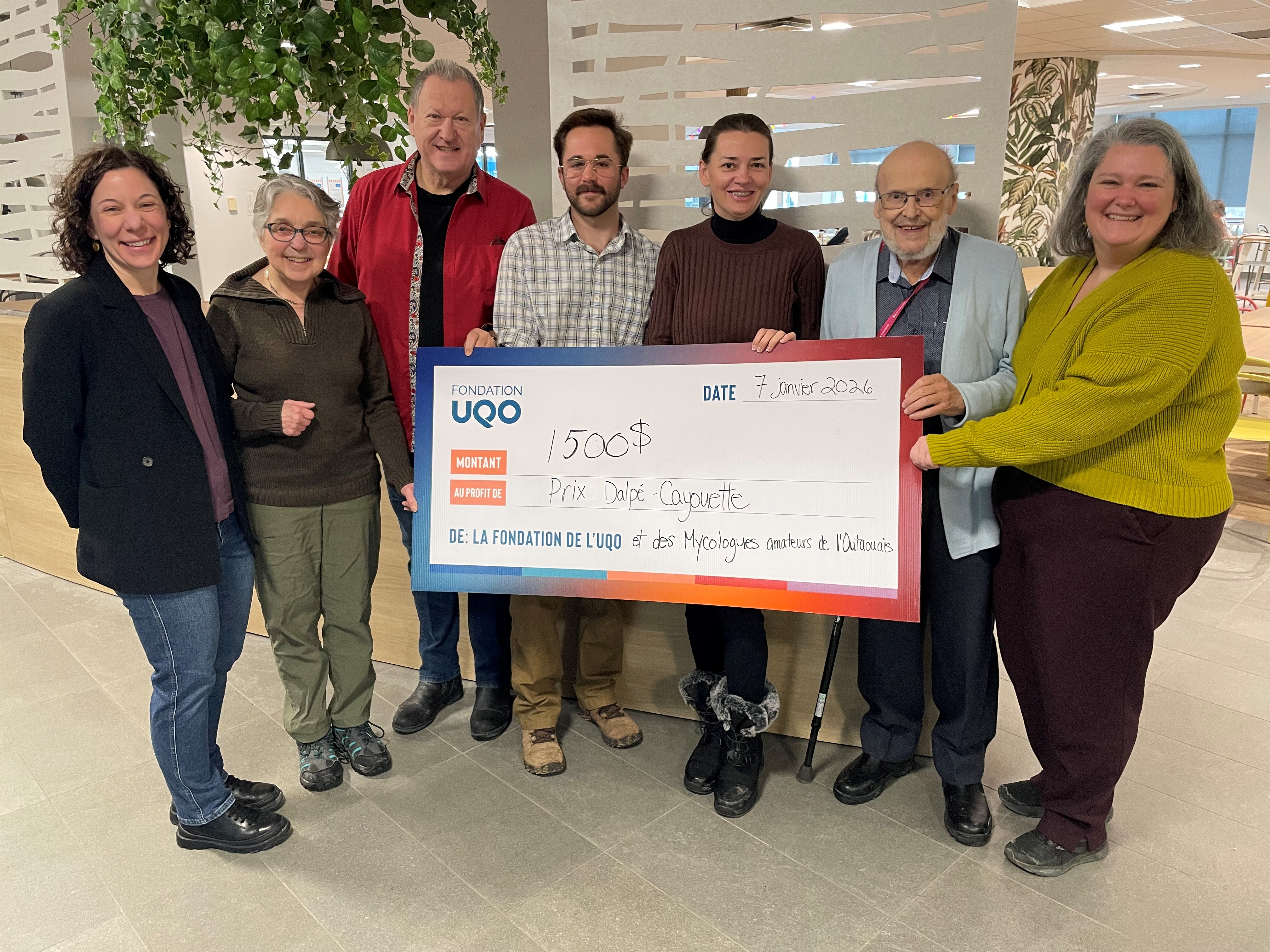 La Fondation de l’UQO tient à souligner avec reconnaissance le soutien des Mycologues amateurs de l’Outaouais (MAO), qui ont récemment remis un don de 1 500 $ pour la création du prix Dalpé-Cayouette. Ce nouveau prix vise à soutenir un ou deux personnes étudiantes dont le projet de recherche porte sur les champignons, un domaine aussi fascinant qu’essentiel à nos écosystèmes.