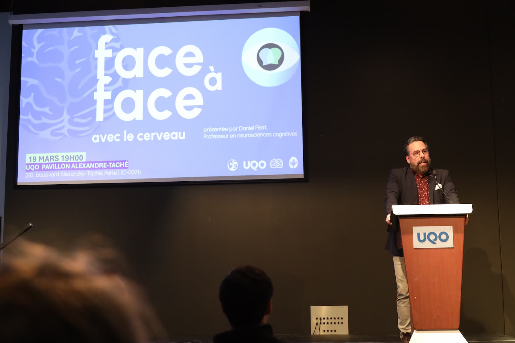 C’est autour de ces questions fascinantes que le professeur en neurosciences cognitives Daniel Fiset, spécialiste de la perception des visages à l’Université du Québec en Outaouais (UQO), a captivé un auditoire nombreux et diversifié, le jeudi 19 mars en soirée, au pavillon Alexandre-Taché.