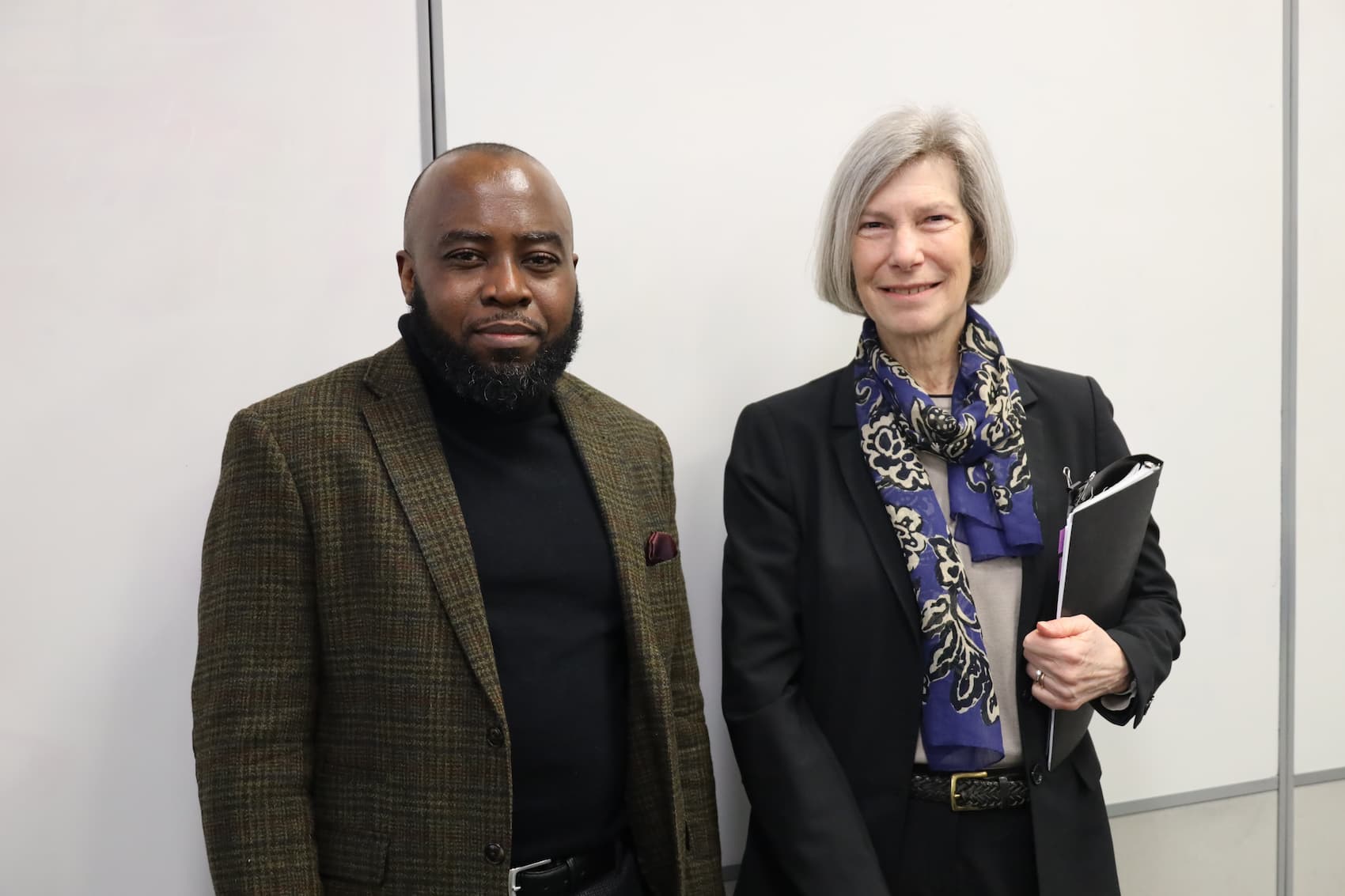 Madame Kozicki en compagnie du professeur Djerry Charli Tandja Mbianda, qui a animé la discussion devant plus de 120 étudiant·es de l'UQO, le 25 mars 2026.