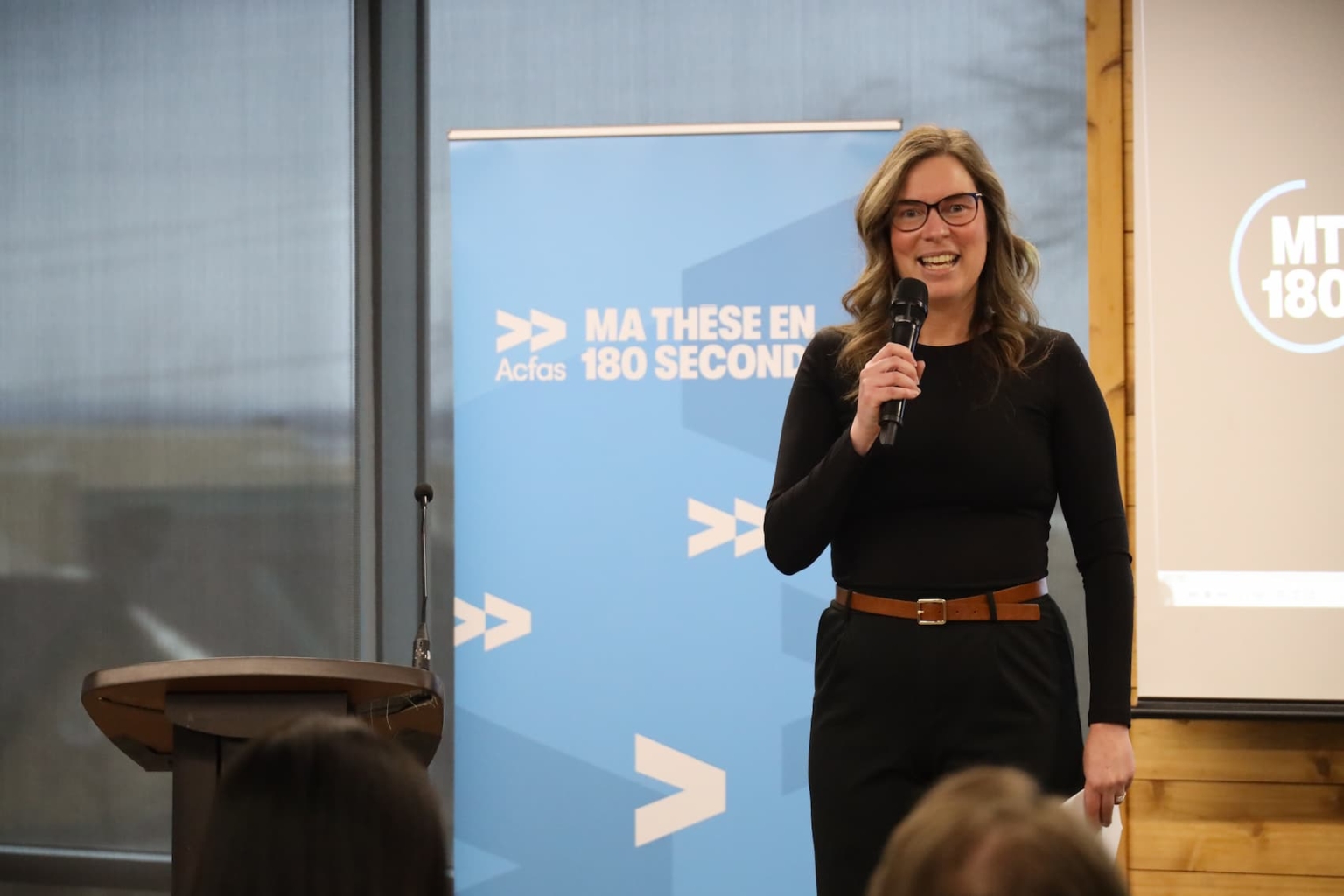La grande gagnante de MT 180 à l'UQO, édition 2026, Audrey-Anne Laurin, étudiante au doctorat en sciences naturelles à l'Institut des sciences de la forêt tempérée (ISFORT-UQO)