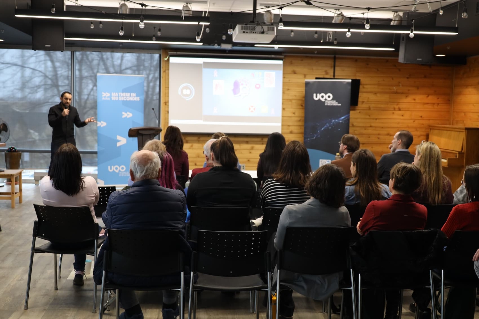 L’édition 2026 de MT180 à l’UQO a attiré un nombre record de 12 personnes étudiantes aux cycles supérieurs qui ont tenté de résumer et vulgariser leur thèse en trois minutes devant un panel de juges, des gens du grand public et de la communauté universitaire. Cette participation surpasse celle de l’an dernier, alors que huit étudiant.es avaient pris part au concours.