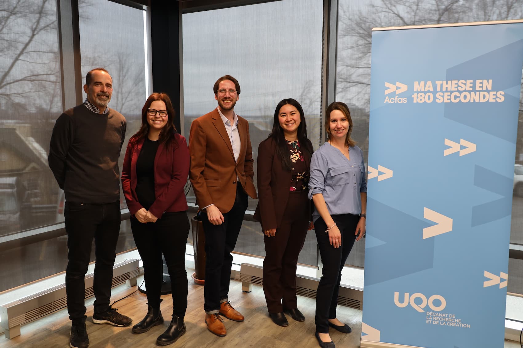 Pour l’édition 2026, le jury était composé de Félix Mathieu, professeur au Département de droit, Catherine Cimon-Paquet, professeure au Département de psychoéducation et de psychologie, Maripier Jubinville, gagnante de MT180 en 2025 et professeure au Département des sciences infirmières. Deux autres membres du jury ont évalué le volet communication, soit Laurie Trudel, d’ICI Radio-Canada Ottawa-Gatineau, qui est également diplômée de l’UQO, et Patrick Duquette, chroniqueur au quotidien Le Droit.