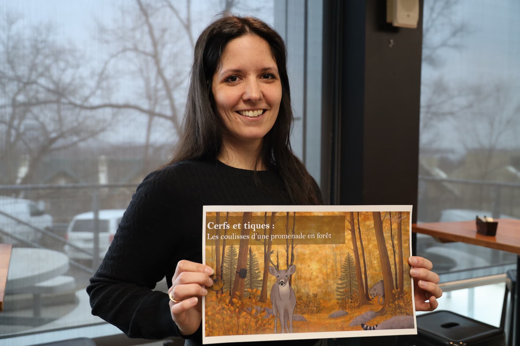 Audrey-Anne Laurin a présenté sa une thèse vulgarisée intitulée : Cerfs et tiques : les coulisses d’une promenade en forêt. Un sujet qui a séduit le panel de juges.