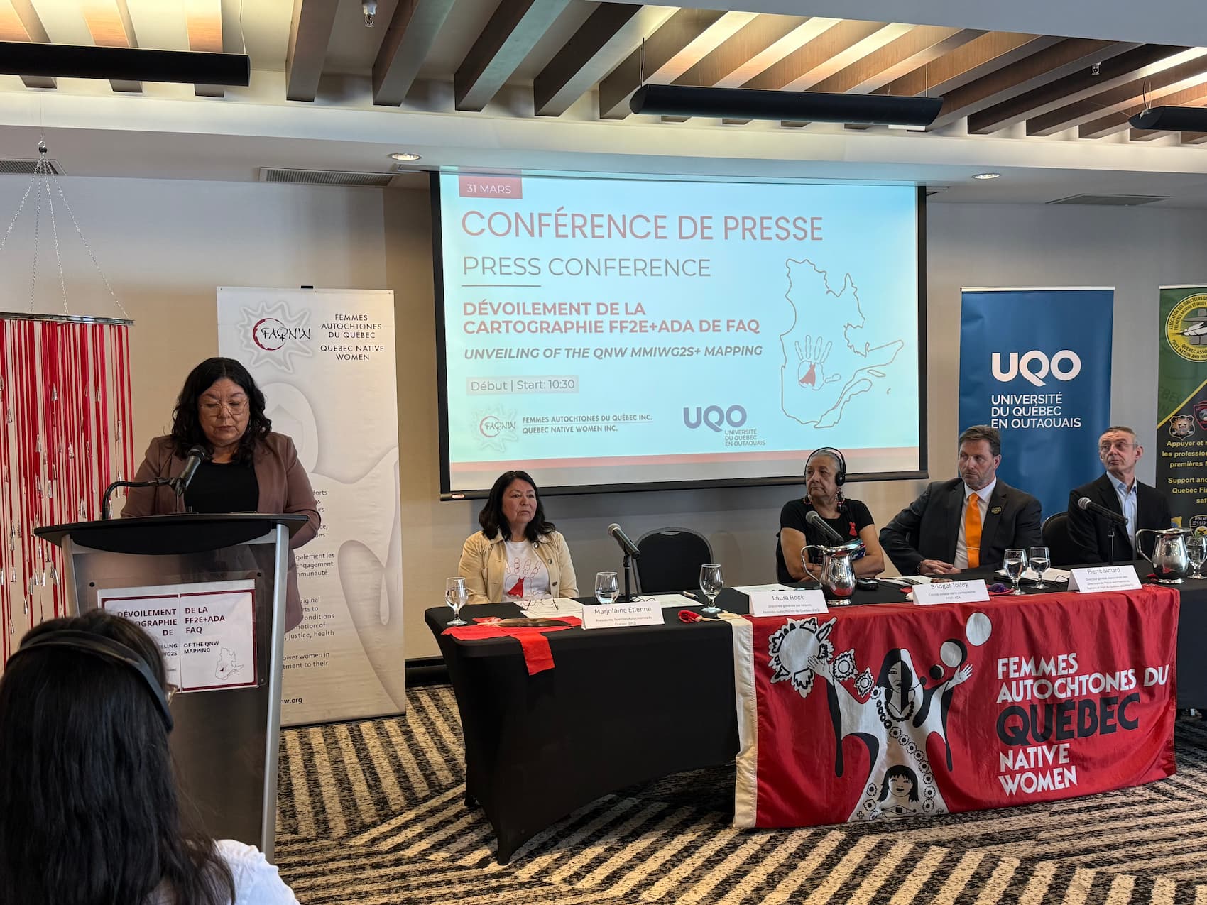 L'organisme Femmes Autochtones du Québec (FAQ) a tenu son point de presse à Québec, le 31 mars dernier (photo: FAQ)