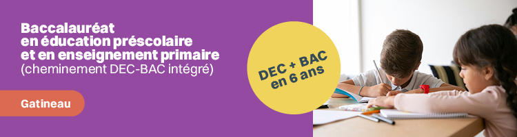 DEC en techniques d’éducation à l’enfance et un baccalauréat en éducation préscolaire et en enseignement
