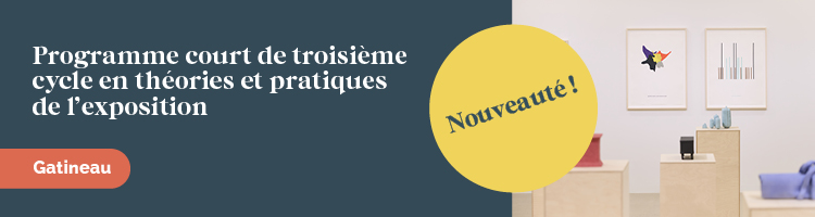 Ce programme poursuit l’objectif de contribuer au développement de l’exposition, comme discipline et champ de pratiques, ainsi qu’à son renouvellement. Sous une perspective interdisciplinaire et intersectorielle ancrée dans l’art et son histoire, il combine la réflexion critique et le travail pratique en vue de former des spécialistes de l’exposition. Il vise à professionnaliser des cohortes étudiantes qui auront atteint un haut niveau d’autonomie intellectuelle et de compétences spécifiques dans la théorie et la pratique de l’exposition; à développer des profils d’intervenantes et d’intervenants hautement qualifiés qui sont amenés à œuvrer dans les organismes artistiques, culturels, muséaux et patrimoniaux ainsi qu’en collaboration avec ces organisations.
