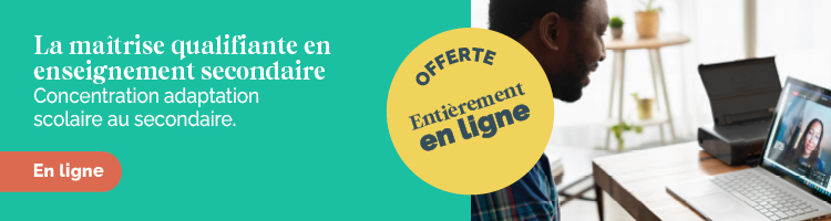 Il s’agit d’une maitrise menant au brevet d’enseignement dans la concentration adaptation scolaire au secondaire.